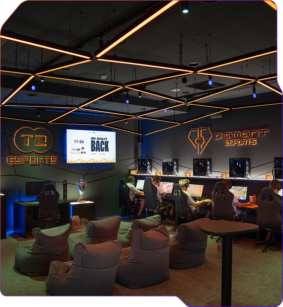 T-2 Esports v Odiseji je dom slovenske profesionalne ekipe Diamant Esports. To pomeni, da treniraš in igraš v istem prostoru, kjer svoje taktike pilijo proji.